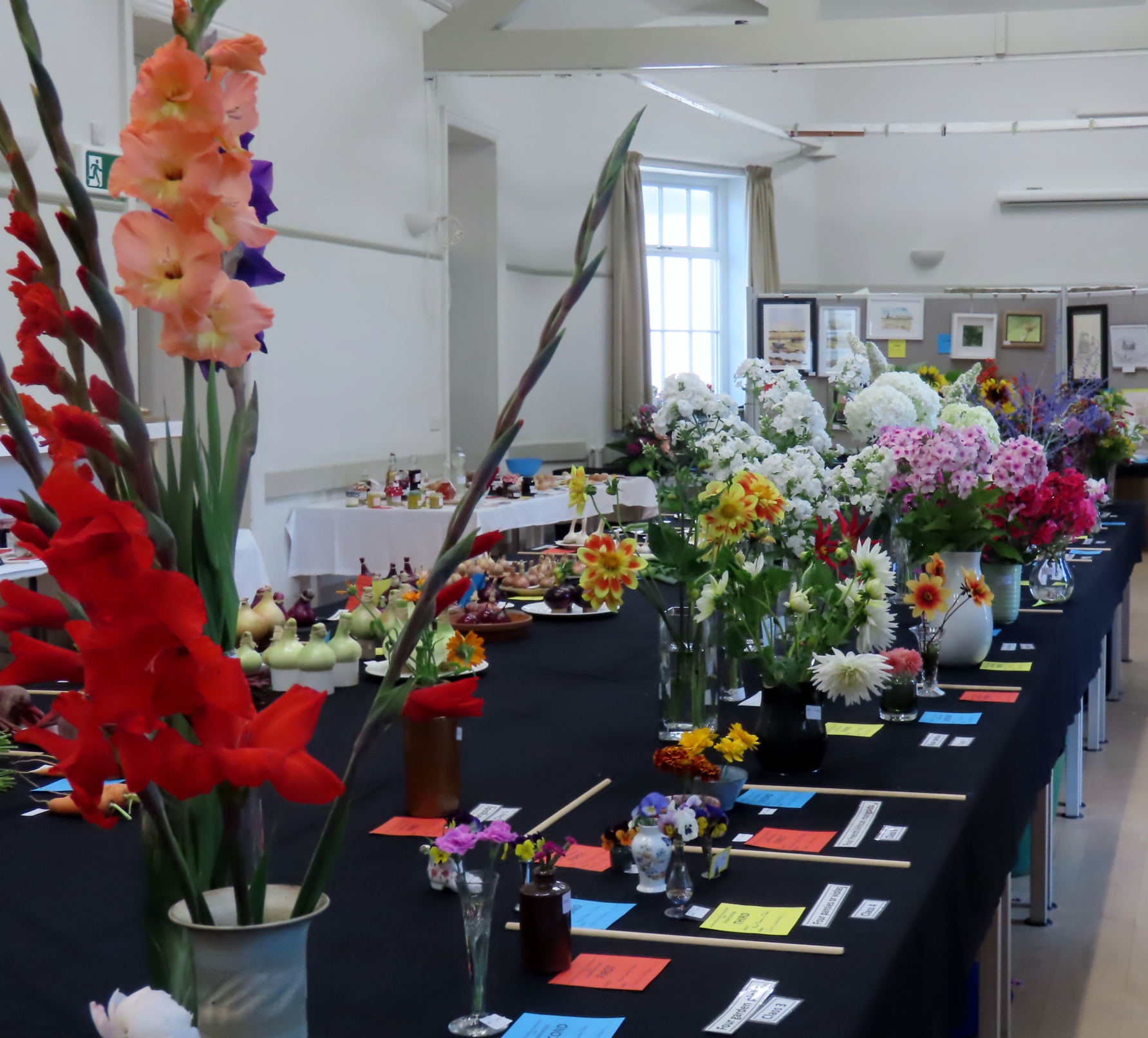 The extra space created in the main Hall by using window sills, extra tables and the 3 new wooden benches was sufficient to allow all sections including the children’s entries to be displayed together in the main hall with only a small overflow into the small hall for one painting class and two artistic flower classes.